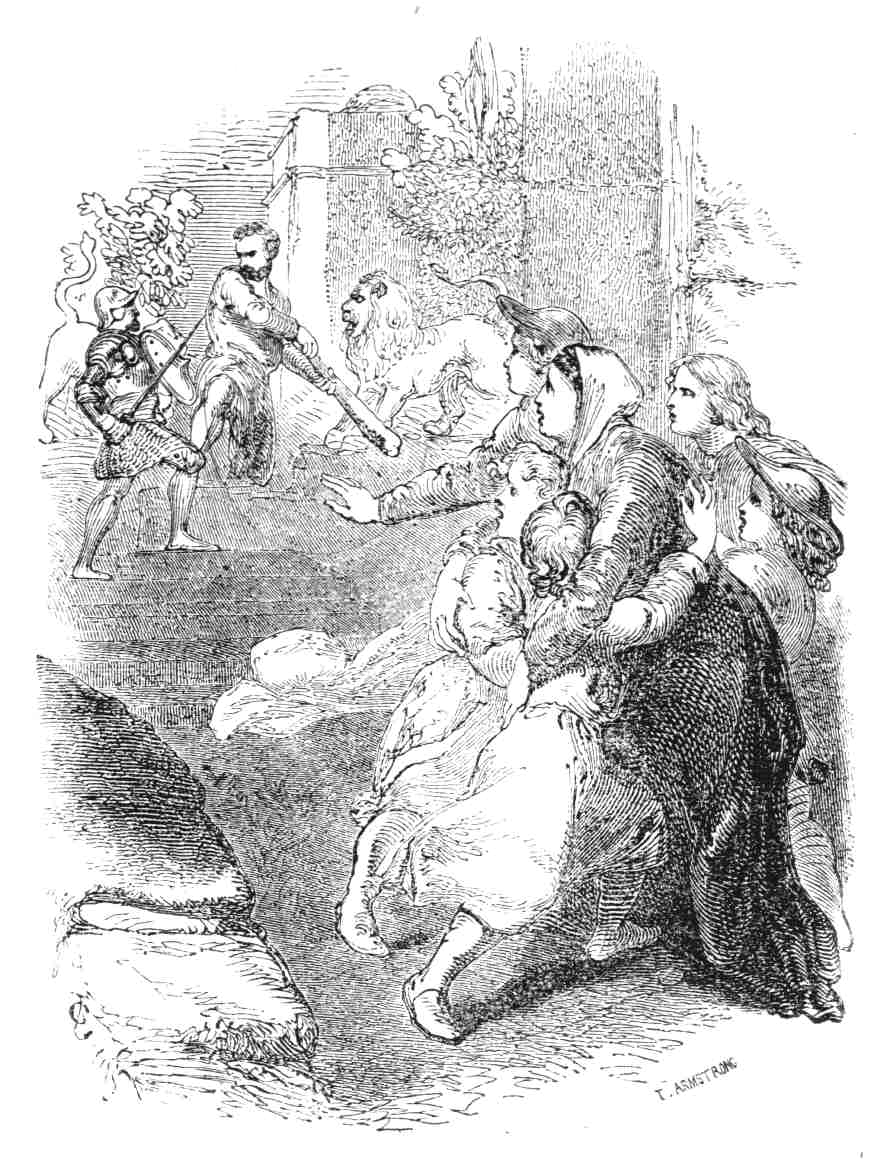 Bátorszívű. Ez az út, hol te oroszlánjaidat lesbe állítod, a Király országútja, és e nők s gyermekek, bármily gyöngék legyenek is, még tőled s állataidtól bántatlanul fognak átmenni. Ezzel ismét egy súlyos csapást mért reá, ami térdre ejté. E csapással sisakját is kettétörte, s a következővel levágta karját. Ekkor az óriás oly rettentőn felordított,