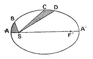 2. Ha bizonyos idő alatt a bolygó a pályáján B-ből A-ba jut és egy más helyzetben ugyanekkora idő alatt a DC útat futja meg, az ABS terület egyenlő a CSD területtel. Más szóval a Napból a bolygóhoz húzott vezérsugár egyenlő időközökben egyenlő területeket súrol. Ebből következik, hogy a bolygó sebes-