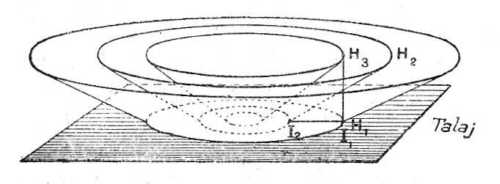 Gondoljunk először is egy kisnyomású középpontot; ebben az esetben az izobárfelszínnek általános alakját a 84. rajz mutatja (nem tekintve a magasságok szándékos túlzását). A C1, C2, C3 izobárvonalak a közös kisnyomású középpont körül tömörülnek és ha a tünemény szabályos, akkor köralakú vonalakat ábrázolnak (l. a 85. rajzot).
