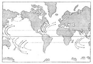 233. Az általános körzés rendes folyamata. A zavarok általános okai. Az előző fejezetben láttuk, hogy a tengeri áramlatok szülte légi körzés rendes állapota az, hogy a hidegebb levegőpartok között szakadatlanul és szabályos módon folyjék.