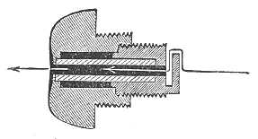 A 113. ábrában, mely a szóban forgó kiáramló nyilások egyikét keresztmetszetben mutatja, látható, hogy a gőz, mielőtt a puszpángfa-csőbe jutna, melynek nyílásán végül kiszabadul, egy fémlemezkébe ütközik s ezt megkerüli. Ily módon elektromosság származik és pedig annál nagyobb bőségben, mentől magasabb a gőz nyomása; a kazán positiv s a gőz negativ elektromossággal telik meg. Ez utóbbinak összegyűjtése végett a gőzsugarak útjába szigetelt vezetőt állítának, mely egy sor csúcscsal van ellátva.