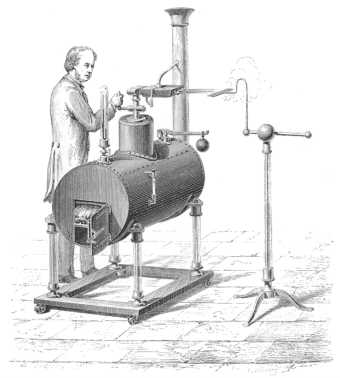 * Azon jelenség felfedezése, melyen eme gép szerkezete alapúl, úgy látszik véletlennek tulajdonítandó. "Egy gépész-munkás, Newcastle közelében egy gőzgép javításával elfoglalva, egyik kezével a szellentyűn kirohanó gőzsugárba, másik kezével a nehezékes biztosító szellentyű karjához nyúlt; fényes szikrát húzott ki belőle s heves rázkódást szenvedett. Armstrong a jelenség körülményeit tanúlmányozta stb." Traité d'Electricité statique de M. MASCART.