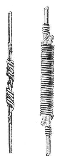 413. ábra. A telegráfdrótok kapcsolásának és összecsavarásának módjai. |