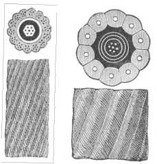 420. ábra. Tengeralatti kábelek külseje és keresztmetszete. |
