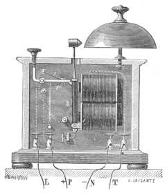 Innét tehát az igen szapora ütések egész sora származik, a honnét is a készülék a rezgő csengetyű nevet nyerte. A gépezet elvét Neef-nek köszönhetjük és LIPPENS belga elektronikus volt az első, ki azt a csengetyűre alkalmazta.