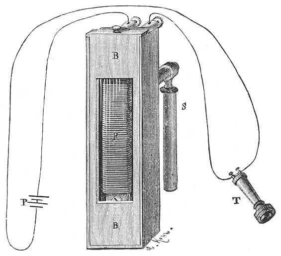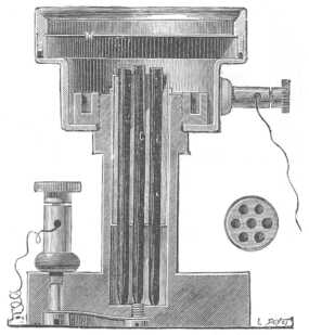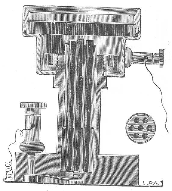 456. ábra. Bert és d'Arsonval mikrofonja (a második rendszer). |