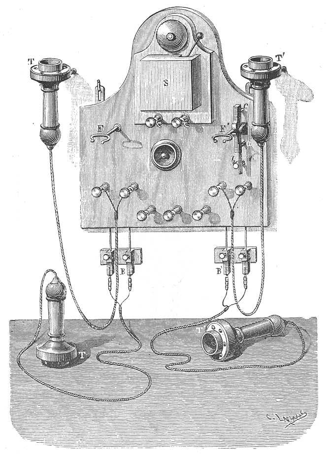 Nem hallgathatjuk el eme kísérletek közül a legnevezetesebbet s a legdöntőbbet: szólani fogunk azokról a telefonos előadásokról, melyeket 1881 őszén a Palais de l'Industrie-ben, az elektromos kiállítás négy termében rendeztek. Számos és türelmetlen közönség a "füleivel" minden este jelen lehetett az opera-színház előadásain, meghallhatta az énekesek hangját, a zenekari kíséretet, sőt még a néző közönség moraját és tapsát is.