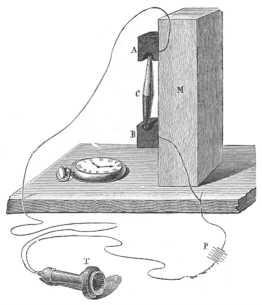 HUGHES, a mikrofon feltalálója, e találmányára a kísérletek egész sorától vezéreltetett, mely kísérleteknek az volt a czélja, hogy megtudja, miféle befolyással volnának a hangrezgések az elektromos vezető-képességre. Ime egyike eme kísérleteknek, mely magában véve is igen érdekes.