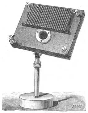 * Ha az új készülék gyakorlati alkalmazásainak hasznos volta még kétséges ia, nem így áll a dolog a radiofon elméleti vagyis tudományos nagy jelentőségével. Minthogy itt nem mélyedhetünk a megkivántató fejtegetésekbe, arra fogunk szorítkozni, hogy felsoroljuk a végeredményeit azoknak a figyelemre méltó vizsgálatoknak, melyeket a tudománynak ebben az új ágában MERCADIER, a 478. ábrában előtüntetett készülék segítségével tett. A végeredmények, melyeknek első része