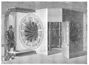 A telefon-hivatalok rendszerének (Párisban tíz hivatal van, egy központi hivatallal) berendezése sok elektro-mechanikai körülményes problemák megoldása után vált lehetségessé; ezek a szerfelett szellemes megoldások megérdemelnék, hogy leírjuk; de helylyel nem rendelkezünk s kénytelenek vagyunk, hogy az olvasót különleges munkákra utaljuk.*