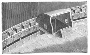 464. ábra. Telefonos előadások. Az Ader-féle áttevők elhelyezése az operaház szinpadán.