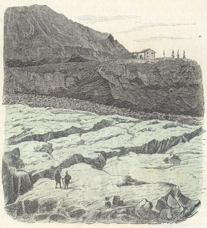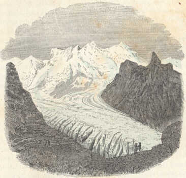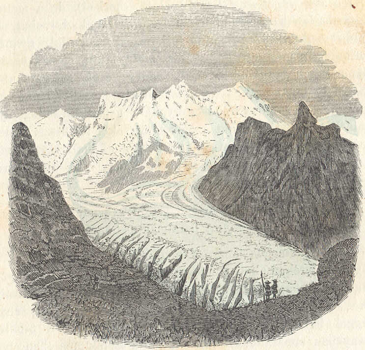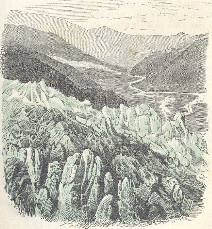 Hogy e méretek arányairól képzetet alkothassunk, hasonlitsuk azokat ismert tárgyakéhoz; képzeljük magunknak Heidelberg völgyét a Molkenkurig, sőt azon felül jéggel betöltve, úgy, hogy a vár és a város tornyaival benne eltemetve legyen; képzeljük továbbá, hogy e jégtömeg a völgy nyilásától kezdve, folyton magasbodva, Neckárgemündig terjeszkedik s szemeink előtt fognak állani a Mer de Glace alsó egyesült jégfolyamának méretei.