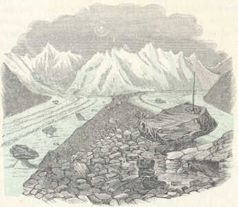 A jégár iszonyú jégtömege ekként ugyan lassan s csendesen, a futólagos észlelő előtt észrevétlenül, óráról-órára alig egy hüvelykkel (a Col du Géant jege a Mer de Glace alsó végét csak 120 év alatt érheti el), de a mellett feltarthatlan hatalommal nyomúl előre; az akadályokat, melyeket emberi kéz rakhatna útjába, szalmaszálak gyanánt eltiporva, s még a völgy gránit szikla falain is szembetünő nyomokat hagyva hátra. Mikor nedves évek sorozata után, valamely jégár alsó vége a fent busásan esett hó nyomása következtében előre tolódik, olyankor nemcsak esetleg útjában álló emberi lakokat s erős fatörzseket tör össze, hanem saját morénájának roppant kőtömbökből felhalmozott domb-sorait is maga előtt tolja, a nélkül, hogy azok által bármi kevéssé akadályoztatni látszanék.
