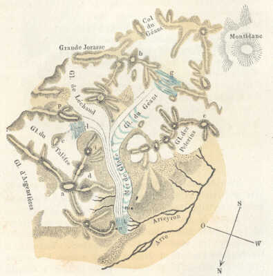 A geologok ez ismertető jelekre támaszkodva kimutatták, hogy a jégárak hajdanta Chamounitól, a Monte Rosától, a Gotthardtól s végre a berni Alpoktól kezdve az Arve, Rhone, Aare és a Rajna völgyein itt egész a Svájcz lapályosabb részeig s a Juráig terjedtek, hol kőtömbjeiket a Neufchateli tó mai szine felett több mint 1000 lábnyi magasságban rakták le. Őskori jégárak hasonló nyomaira az angol szigetek és Skandinavia félszigetén is találunk.