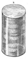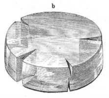 Másként áll a dolog, ha a préselő lapok közé a hó vagy jégből préselt hengerek egyikét helyezem. A mint a prést megszoritom, az ilyen henger is recsegni s ropogni fog, de azért nem törik szét, hanem alakját lassanként változtatja, folyvást alacsonyabb, s megfelelőleg vastagabbá válik, s csak midőn már meglehetősen lapos koronggá alakult kezd szélén repedezni, kis mértékben mintegy jégárhasadékokat képezvén. A 23-ik ábra egy ilyen henger
