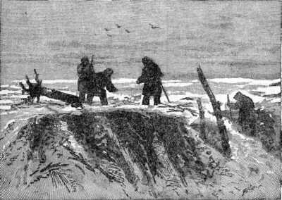 (Bulkur volt ez a hely, 160 kilométerre attól a helytől, ahol De Longtól megváltak. Tévelygő útjukban 200 km-nél jóval nagyobb távolságot jártak meg 10 nap alatt, csaknem minden táplálék nélkül, hóban-fagyban! Ők azt hitték, Ajakitban vannak.)