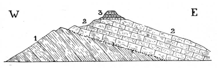 51. kép. A Pyramid-hegy szerkezete. 1. Devon, 2. Alsó-karbon, 3. Felső-karbon.