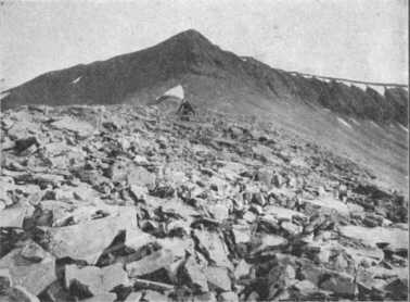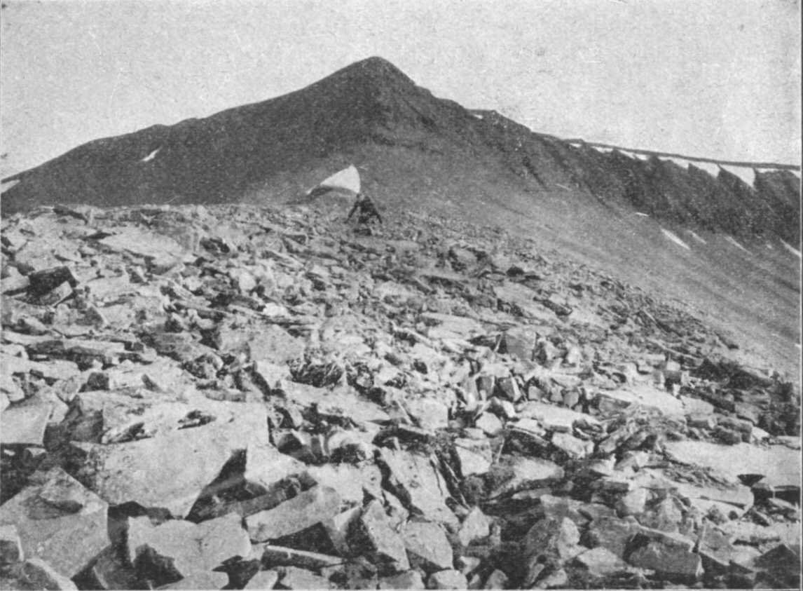 Amint azonban a vízválasztó nyereghez közeledtünk, oly sűrű lett az aprószemű eső, és olyan sűrő köd fogadott bennünket, hogy eltévesztettük egymást szem elől. A nehéz járás miatt nagyon szetszóródott a társaság, majdnem mindenki egyedül bukdácsolt a kövek közt. Útitársaim egészen eltűntek szemem elől. A nedves, síkos köveken óvatosan kellett felfelé kapaszkodni, s nem figyelhetett az ember az irányra. Így történt, hogy fenn a nyergen az a veszedelem érhetett bennünket, hogy teljesen eltévesztjük az irányt, s esetleg a másik oldal felé indulunk le. Ki tudná megmondani ebben a szörnyű vizes, ködös levegőben, hogy az egyenetlen térszínen merre van kelet és nyugat? Szélcsendben ez a veszedelem nem is hinnők el, hogy mennyire végzetes lehet. De szerencsére az orkán tájékoztatott, hogy merre kell fordulnunk, ha vissza akarunk térni.