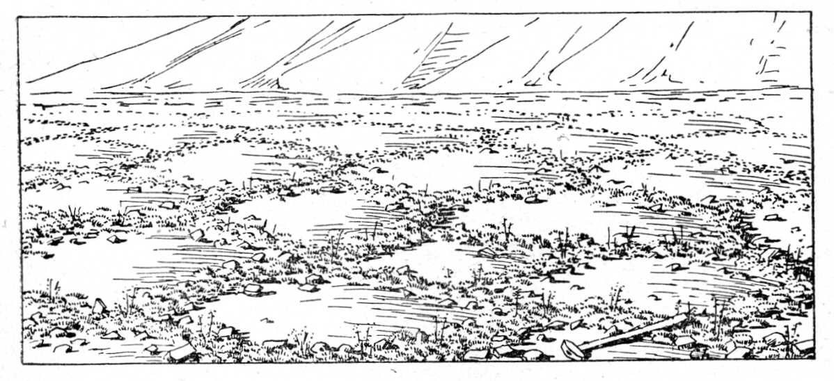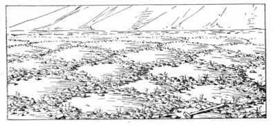 A lejtőkről, magaslatokról, fennsíkokról ez az olvadékvíz igen gyorsan eltávozik, s nyár derekán egyes helyeken valóságos sivatagokat látunk. Nincs ott semmiféle növényzet, alig van valami iszap, vagy agyag a felszínen, hanem csupa kő és kő.
