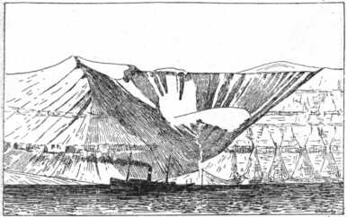 Az Advent-öböl északnyugati sarkán, a plató meredek pereme alatt valami régi bánya van, bizonyosan szenet kerestek benne. A bánya faácsolatának egy része künn van a szabad levegőn, kitéve szélnek és esőnek. A gerendák egyikébe 1896-os évszám van belekarcolva. A gerenda és a karcolás 1910 nyarán, tehát 14 év múltán olyan ép, olyan friss volt, mintha csak tegnap vésték volna oda. Még a fa sem pusztul el itt a szabad levegőn, nem csoda, ha a kövek összerepedezve, de épen, mállás nélkül megmaradtak.