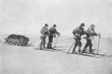 Újból útnak eredve, rémülettel láttuk, hogy sín járva alig tudjuk megmozdítani a szánt. Az első óra borzasztóan kínos volt a laza homokszerű hófelszín miatt. Később, utunk vége felé, jobban haladhattunk, de mindvégig rettentő erőfeszítések között. Elhatároztam mégis, hogy megmaradok a sí mellett.