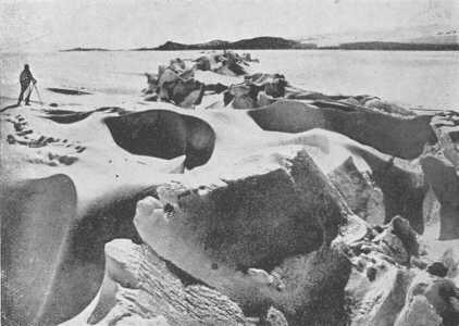 Habár elhaladtunk a Bluff előtt, négy napja mit sem láttunk a szárazföldből a rossz idő miatt. Nem hittem volna, hogy a ködös időjárás ilyen soká tarthat ezen a vidéken. Máskor mindig ismételten megpillantottuk a földet errefelé. Ha a tájékozódásban erre kellett volna támaszkodnunk, ugyancsak rosszul járunk. Bebizonyult, hogy a hórakások rendszere a lehető legjobb ezen az óriási hósivatagon.