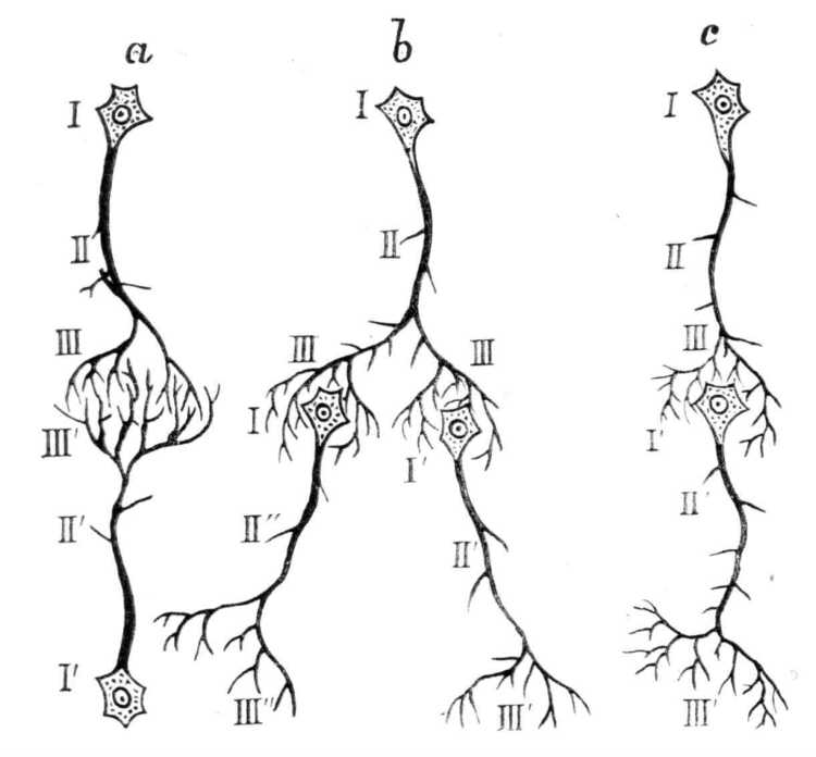 2. ábra. Az idegsejtek egymással való érintkezésének sémája (OBERSTEINER szerint).
