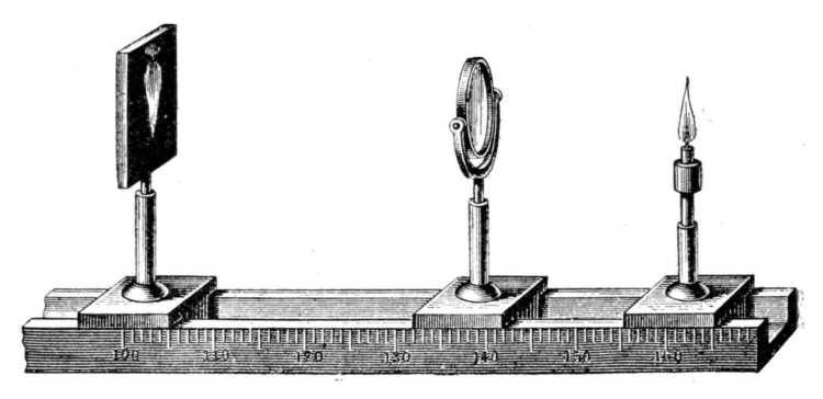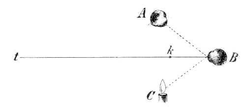 Ha égő gyertya lángja előtt vonalzót tartunk ]gy, hogy a láng egy része a vonalzó felső széle mögött még kiemelkedik, akkor a vonalzó széle azon helyen nem egyenesnek, hanem kimélyítettnek tetszik; a határfelületről nyert szóródásos képet az élénkebben ható lánghoz tartozónak itél-