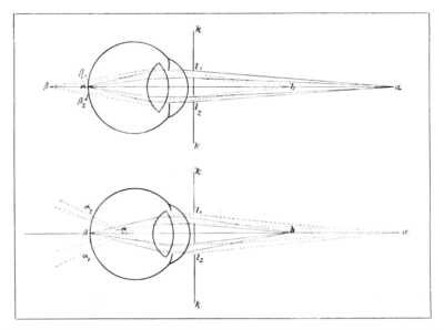 Ehhez hasonlók a viszonyok a szemen is. A szem előtt álló tárgytól a pupillán át beeső fény sugárkúpot alkot, melynek