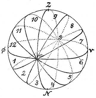 Z O N W kör az éggömböt képviseli, melyet az Os Wn látóhatár 2 egyenlő nagyságú féltekére oszt. Ha erre azután függőlegesen a Zs Nn délkört rajzoljuk, akkor az éggömb 4 egyenlő részre osztódott.