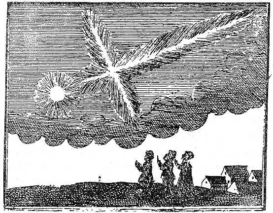 Lássunk már most néhány bonyolultabb esetet, melyekben az észlelés és emlékezés hibái nem közvetlenül, hanem más meggyökerezett nézetekkel kapcsolatban idéztek elő babonás képzeteket. Erre kitünő példákkal szolgálhatnak az ú. n. jósjelek, óvások és jövendölések. Ezek között pedig, a régi idők felfogása szerint, az üstökösöknek jut a főszerep. Ismeretes, hogy még a mult [XVIII.] században is a legcsodálatosabb dolgokat, u. m. égő gerendákat, kivont kardokat, levágott fejeket, sárkányokat és más szörnyetegeket láttak az üstökösben. Csak természetes, hogy az ilyen félelmes képződmény megjelenését bekövetkezendő csapások intőjelének tekintették.