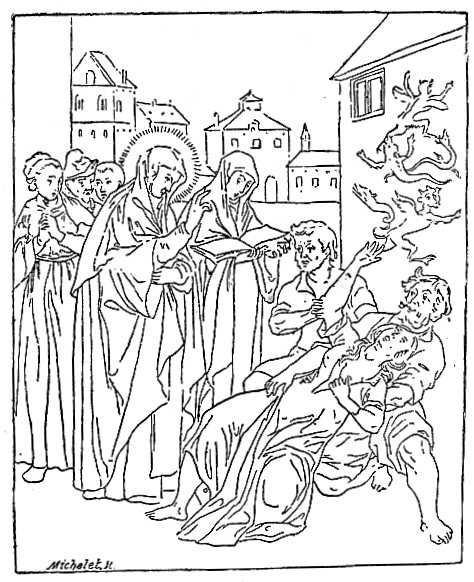 (1) Mellékelt (60-ik) ábra Adam van Noort (15621641) vésése nyomán készült; Richer: Etude clinique sur la grande hystérie, cz. művéből (Paris, 1833.) vettük. Szerző.