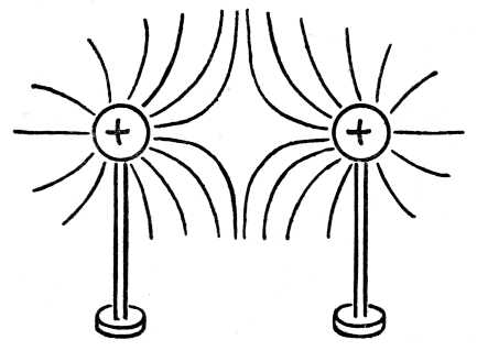 162. kép. Két egynemű villamos töltésú golyó erőtere.
