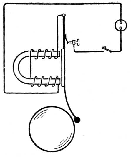 Az induktor. Ismerjük már az elektromágneses szaggatót, ez éppen arra való. Kapcsoljunk be tehát az elsőleges áramkörbe elektroniágneses szaggatót, pontosan elvégzi munkáját és a másodlagosban váltóáramot kapunk. A másodlagos áramkör váltóárama abban az ütemben váltakozik, ahogyan az elsőleges körben a szaggató dolgozik. Ennek az összeállításnak induktor a neve. Az induktor áramot ad áram árán, mert az elsőlegesben áramforrásnak, pl. akkumulátornak, kell lenme. Tulajdonképpen az egyenáramot váltóárammá alakítja át, mégpedig rendszerint jóval nagyobb feszültségű árammá, mint az elsőleges áram. Lehet az induktort úgy megszerkeszteni, hogy a másodlagos tekercsben gerjesztett elektromotoros erő igen jelentékeny. Ha ilyenkor a másodlagos tekercs drótvégei egymástól bizonyos távolságban szabadon vannak, folytonosan villamos szikra üt át a drótvégek között, s így a szikra maga zárja a másodlagos áramkört. Tudjuk már, hogyan lehet a keltett elektromotoros erőt növelni: minél inkább szaporítsuk a másodlagos tekercs meneteinek számát és fokozzuk az elsőlegesben a másodpercenkénti szaggatások számát. Az elektromágneses szaggatónak sokkal nagyobb a tehetetlensége, semhogy másodpercenként 1020-nál többször tudjon szaggatni, ezért nagy induktorok elsőleges áramkörében másféle szaggatókat használnak. A Wehnelt-féle elektrolitikus áramszaggatóval pl. másodpercenként 2000 szaggatás is elérhető.