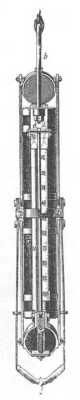 hengerben van elhelyezve egy óramű, a mely 24 óra alatt körülforgat egy érzékeny papirost, üveg alatt levő, tized milliméter szélességű hasadék előtt. Az egész alkalmasan megterhelve a tengerbe merül és vele egyidőben összehasonlítás czéljából hasonló készülék működik a hajón (98. rajz).
