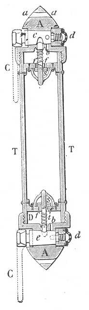 Ez a palaczk erős aczélcsőből áll, mely mindegyik végén kettős elzáró készülékkel van ellátva, csappal és szeleppel; ez utóbbit a csap igazítja. Mindegyik csap egy-egy C nagy emelőkarral van ellátva és ha ez a kar a palaczk tengelyére merőlegesen áll, akkor a csap ki van nyitva, míg ha a kar párhuzamos a tengelylyel és lefelé áll, akkor a csap be van zárva. A csőnek mindegyik A vége csúcsíves alakú és lehetségessé teszi, hogy a palaczk az aa furatnál fogva a beleillő zsineg segítségével a kábelhez legyen köthető.