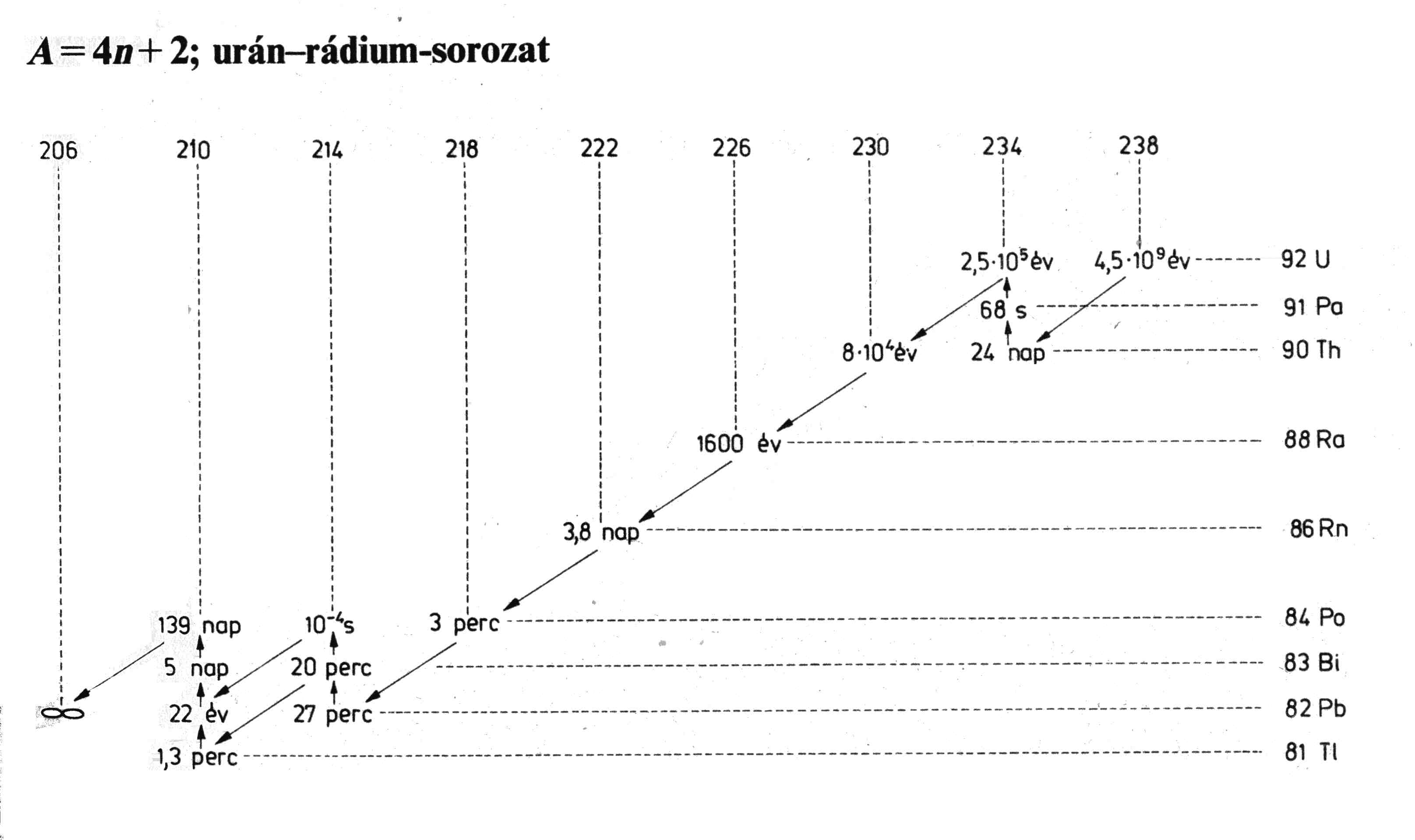 A 31. rajz az uránium atómbomlásának teljes sorozatát tünteti föl, mai tudásunk szerint. (*)