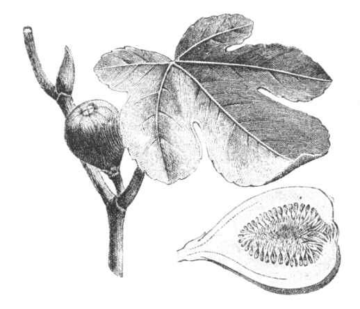 5. kép. A fügefa (Ficus carica) ága és termése (az utóbbi hosszmetszetben).