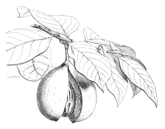77. kép. A szerecsendiófa (Myristica fragrans) terméses ága.
