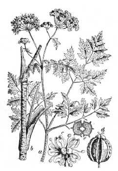talis), a sisakvirág (Aconitum), a kikerics (Colchicum autumnnale) (1), a beléndek (Hyosciamus) a mérges csomorika (Cicuta virosa), az ádáz vagy kutya-petrezselyem (Aethusa); íme csupa fontos növényei a varázslatnak és orvoslásnak. Némely növényben igen későn fejlődik ki a méreg, így van ez a kenderben, a foltos bürökben (Conium maculatum), mely utóbbinak (71. kép) ható anyaga, a coniin, csak a nyár folyamán jelenik meg s oly erős méreg, hogy egyetlenegy cseppje a házi nyulat megöli. Orvosszerül az egész növényt szokás használni; a belőle készített kivonatok és főzetek sok betegségben jótékony hatásúak. A mérget tartalmazó növények között igen fontosak a kábító mérgeket szolgáltatók, melyeket közönségesen narkotikus növényeknek neveznek. E növényeknek az ó-kor varázslataiban, valamint a középkor boszorkányhistóriáiban nagy szerep jutott. Mint orvosszer nagyfontosságú az ópium, mely tulajdonképen a kerti mák (Papaver somniferum) száradt nedve, a hasis, mely a kendernek (Cannabis sativa) gyantája, a beléndek (Hyosciamus niger), sőt maga a dohány is, a mely Európában eredetileg csakis mint gyógyító szer volt ismeretes s körülbelül 43 baj ellen rendkívül magasztalt orvosság hírében állott. Mindezek az anyagok tiszta állapotban nagy mérgek, de pl. a nicotin (a dohány ható anyaga) hígított állapotban is megöl kisebb állatokat. A nevezetteken kívül a bódító növényeknek hosszú sorozata állott régente az orvoslás szolgálatában. Általában mondhatni, hogy a trópusi vidékek növényméreg dolgában gazdagabbak, mint a mérsékelt éghajlat. A legnagyobb méreg, mely a mi nálunk is előforduló növényekből előállítható, a kéksav. E nagy méreg az őszi baraczkfa leveleiben, a szilvafa és keserű mandulafa magvaiban fordul elő. Úgy látszik, hogy már a régi egyiptomiak is ismerték. Párisban a Louvreban papirusztekercset őriznek, a mely a misztériumokban jártasok számára szabályokat tartalmaz; e szabályok egyike így szól: "Ne mondjátok ki ezeket a betűket I, A, O, különben őszibaraczk a büntetés," vagyis: különben mérget kaptok. Némely népeknél a pap a hűtlen asszonynak italt adott, mely rögtön ölt; ez italnak fő alkotó része a kéksav volt. E méreg tiszta |
