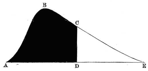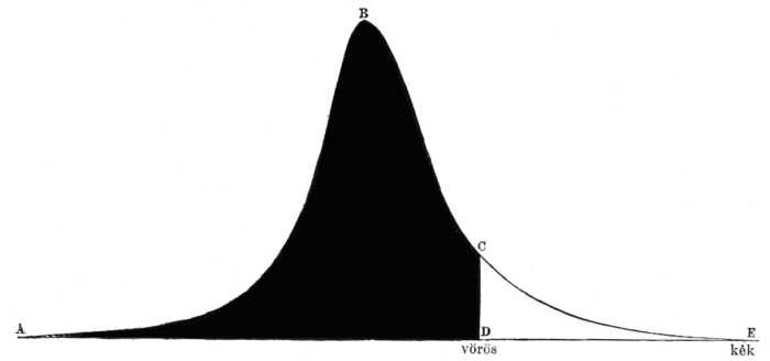 szétoszlását a nap színképében. Az E betű a színkép kék részének azon pontját jelzi, hol a hő először vált észrevehetővé. E-től D-ig, hol a színkép vörös határa van, a hőmérsék folytonosan fokozódik, a mint a görbe folytonos emelkedése mutatja. D-nél a látható színkép megszűnik, de a határtól egészen A-ig egy láthatatlan színkép huzódik, hol aztán ez is eltűnik. Sir William Herschel észleletei szerint BDE fehér tér a nap látható sugárzásának, az ABD fekete tér pedig a nap láthatatlan sugárzásának hőbeli értékét fejezi ki.